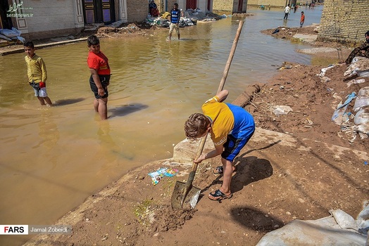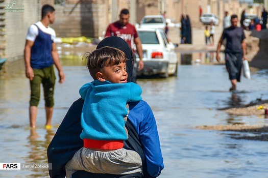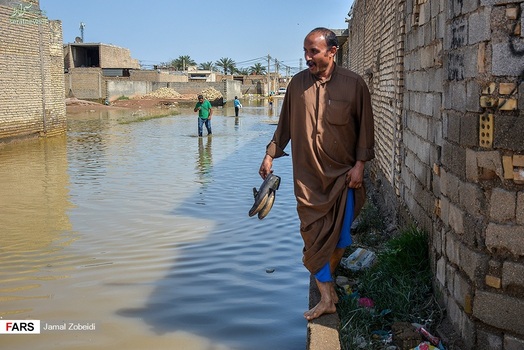 ورود سیلاب به غرب کلانشهر اهواز در پی تلاقی رودخانههای کرخه و دز و پیشروی آن به اهواز، برخی از مناطق مسکونی در محلات « عیندو » و « گلبهار» به زیر آب رفت.