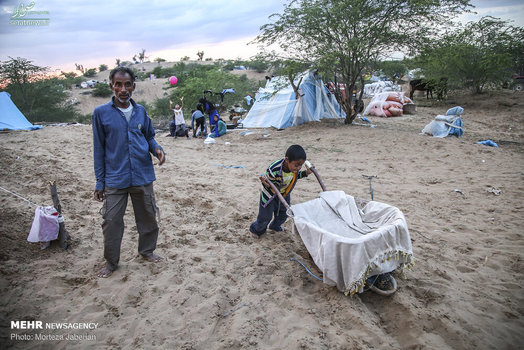 تصاویر/ زندگی سیلزدگان در شنزارهای حمیدیه