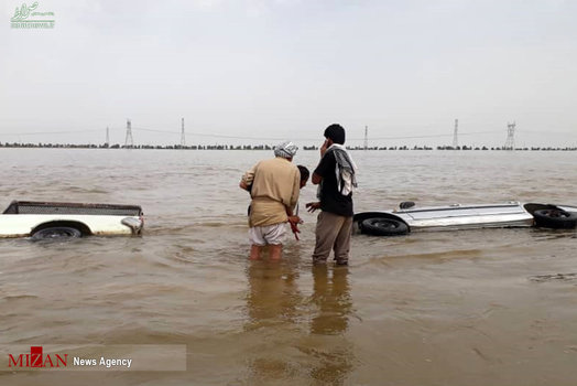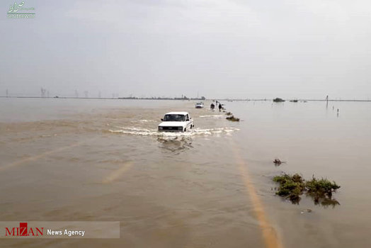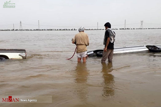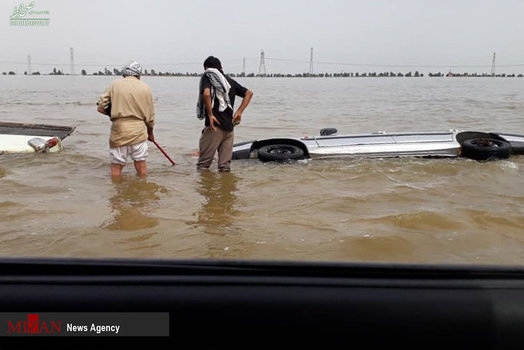 بر اثر بالا آمدن آب در جاده اهواز به شادگان چند خودرو به زیر آب رفتند.