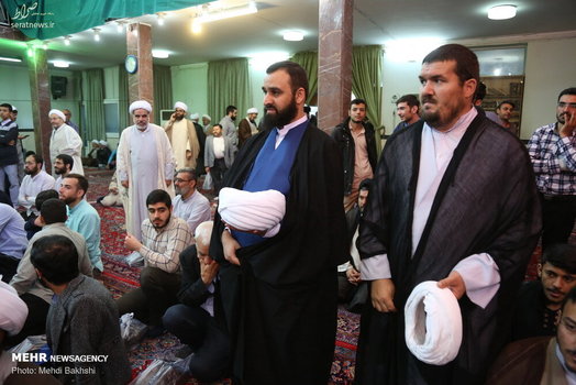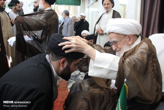 همزمان با سالروز میلاد با سعادت منجی عالم بشریت حضرت صاحب الزمان (عج) جمعی از طلاب قم در دفاتر مراجع تقلید ملبس به لباس روحانیت شدند.