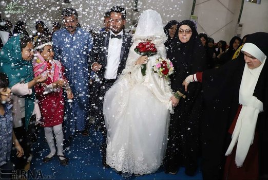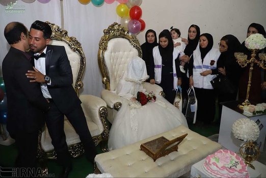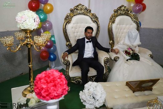 جشن عروسی یک زوج جوان از سیل زدگان استان خوزستان دیشب، همزمان با نیمه شعبان در اردوگاه اسکان موقت شهید هاشمی اهواز برگزار شد.