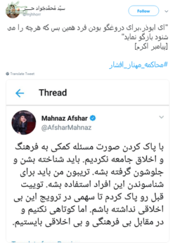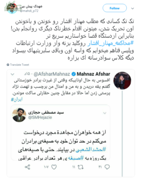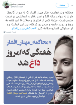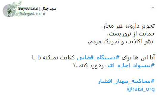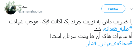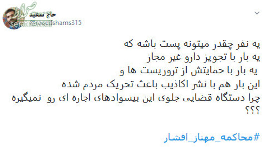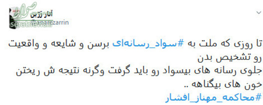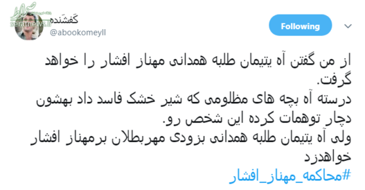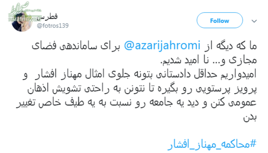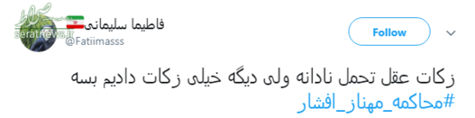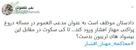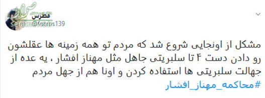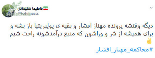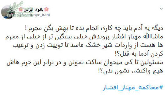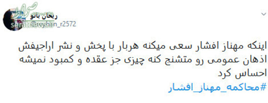 در ادامه نمونههایی از نظرات کاربران با هشتگ #محاکمه_مهناز_افشار را میبینید.