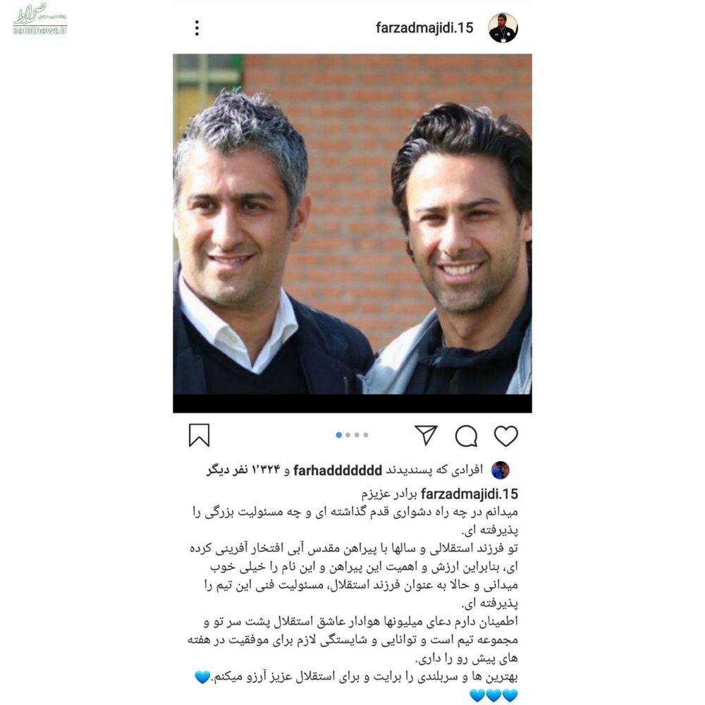 عکس/ حمایت اینستاگرامی فرزاد مجیدی از برادر