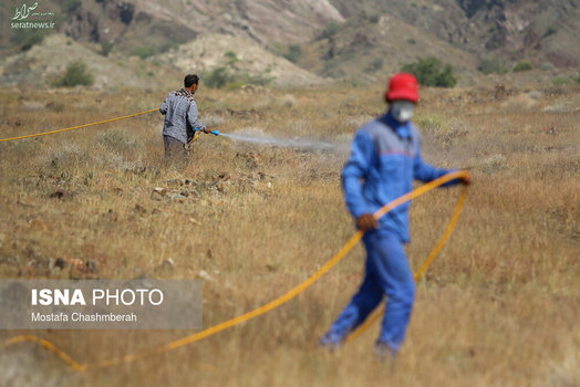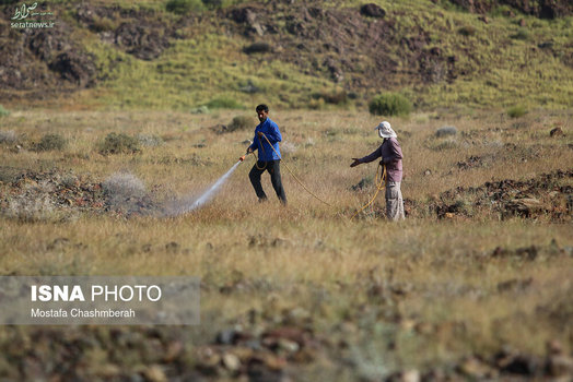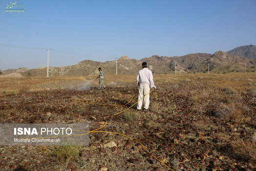 تصاویر/ مبارزه با هجوم ملخها در هرمزگان