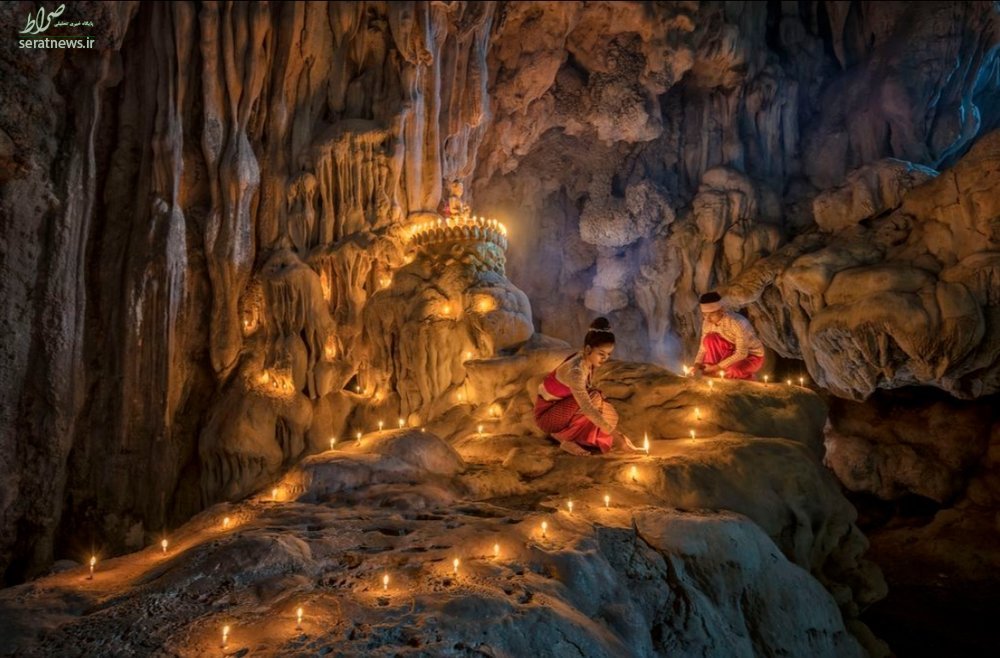 عکس امروز نشنال جئوگرافیک مراسم آیینی بودایی ها را در یک غار آهکی در نزدیکی شهر ماولامیاین میانمار نشان می دهد که شرکت کنندگان شمع هایی را برای پیشکش به بودا روشن می کنند. این شمع های روشن، نماد نوری هستند که آموزه های بودا به زندگی پیروان او بخشیده است.