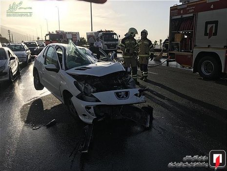 یک دستگاه پژو ۲۰۷ در مسیر شرق به غرب بزرگراه شهید خرازی در حال حرکت بود که ناگهان از مسیر اصلی خود خارج و واژگون شد. خوشبختانه راننده با کمک رانندگان خودروهای عبوری از داخل خودرویش بیرون آمد. این فرد که از ناحیه سر و پا دچار مصدومیت شده بود، تحویل عوامل اورژانس حاضر در محل شد.
