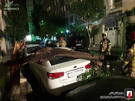 ساعت ۲۰:۳۶ شب گذشته وزش باد شدید موجب شکسته شدن درخت و سقوط آن بر روی یک دستگاه کیا سراتو در بزرگراه شهید اشرفی اصفهانی شد. خوشبختانه این حادثه خسارت جانی در پی نداشت و تنها به این خودرو خسارت مالی وارد شد.
