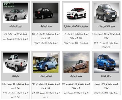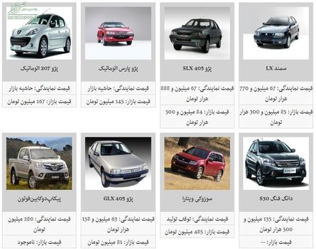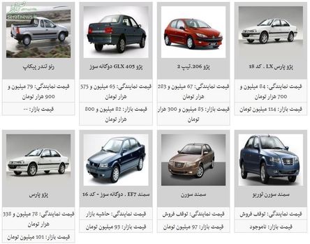 امروز قیمت برخی محصولات ایران خودرو با اندکی نوسان قیمت همراه شد. دنا (تیپ ۲) با مبلغ ۱۱۴ میلیون تومان، پژو ۲۰۶. صندوقدار با مبلغ ۱۰۳ میلیون تومان، رانا LX با مبلغ ۸۴ میلیون تومان، سمند EF۷ با مبلغ ۸۷ میلیون و ۸۰۰ هزار تومان، پژو ۲۰۶. تیپ ۲ با مبلغ ۸۵ میلیون و ۳۰۰ هزار تومان، سوزوکی ویتارا با مبلغ ۴۸۵ میلیون تومان، پژو ۲۰۷ اتوماتیک با مبلغ ۱۶۷ میلیون تومان و سمند LX با مبلغ ۸۵ میلیون و ۳۰۰ هزار تومان خرید و فروش شد.