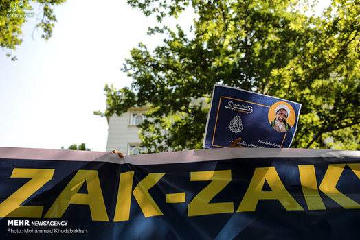 جمعی از دانشجویان و اساتید حوزه و دانشگاه صبح چهارشنبه ۱۲ تیر ۱۳۹۸ با حضور در مقابل دفتر سازمان ملل در تهران خواستار آزادی شیخ زکزاکی رهبر شیعیان نیجریه شدند.