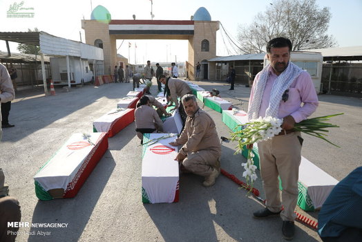 تصاویر /ورود پیکر مطهر ۴۴ شهید دفاع مقدس از مرز شلمچه