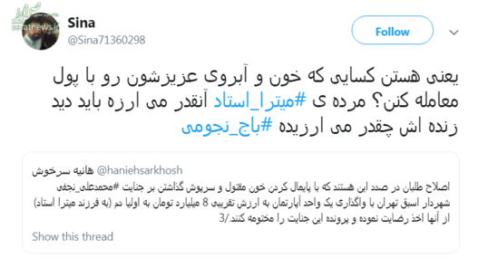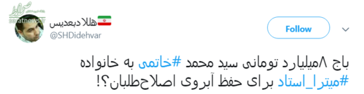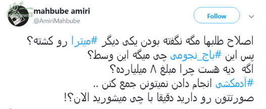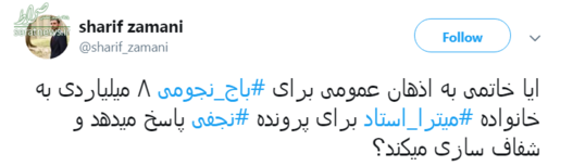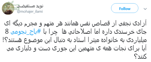 در ادامه نمونههایی از نظرات کاربران فضای مجازی را که با هشتگ #باج_نجومی به اشتراک گذاشته شده است، میبینید.