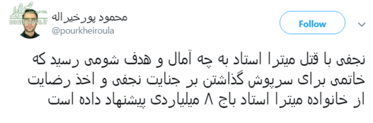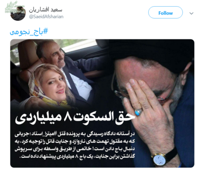 اصلاحطلبان در صدد این هستند که با پایمال کردن خون میترا استاد بر جنایت محمدعلی نجفی شهردار اسبق تهران سرپوش گذارند. آنان در تلاش هستند با واگذاری یک واحد آپارتمان به ارزش تقریبی ۸ میلیارد تومان به اولیا دم (به فرزند میترا استاد) از آنها اخذ رضایت و پرونده این جنایت را مختومه کنند.