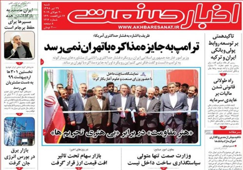 تصاویر صفحه نخست روزنامههای امروز (شنبه، 29 تیر) در قسمت پایین، قابل مشاهده است: