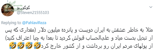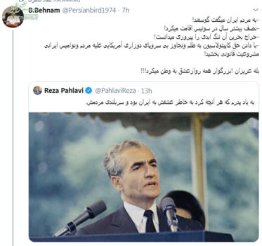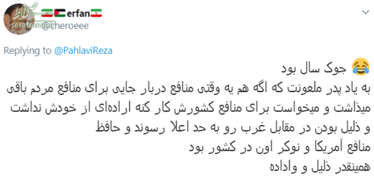 در ادامه نمونههای نظرات کاربران فضای مجازی در پاسخ به این پست رضا پهلوی ملقب به ربع پهلوی را میبینید:
