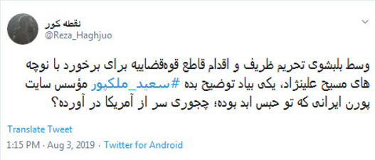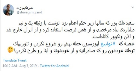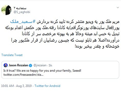 اما نکته جالب ماجرا اینجا بود که جیسون رضاییان جاسوس آمریکایی که این روزها با پخش سریال گاندو نامش بر سر زبانها افتاده است با انتشار پستی در صفحه توییتر خود از فرار سعید ملکپور ابراز خرسندی کرد و نوشت: