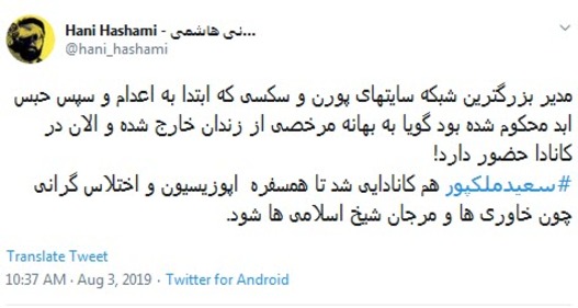 ساعاتی پیش مریم ملکپور خواهر سعید ملکپور مدیر بزرگترین شبکه سایتهای مستهجن و پورنوگرافی که در سال ۹۲ به حبس ابد محکوم شده بود با انتشار ویدئویی در صفحه توییترش از فرار خود و برادرش از ایران و سفر به ونکوور کانادا خبر داد. این ادعا در حالی مطرح شد که هنوز هیچ مرجع رسمی، درباره فرار یا خروج قانونی سعید ملکپور از کشور موضعگیری نکرده است.