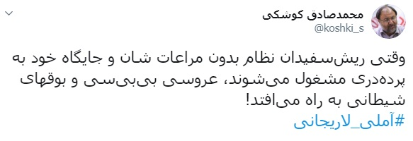 علی علیزاده، کارشناس رسانه مقیم لندن از این افراد است که در مقایسهای قابل توجه بین رجل دوران پهلوی و انقلاب اسلامی نوشت: «سرتاسر تاریخ پهلوی یک مورد مشابه همین دعوای لاریجانی- یزدی ندارد. هویدا، علم، امینی، زاهدی، منصور، حتی قوام و فروغی. همه لال به قدرت آمدند و لال از قدرت رفتند. نوکران بیصدای بیوجود کمتر از مترسک. این تضاد، تنش و حرکت، از سران نظام تا مردم عادی فقط محصول آن انقلاب درخشان است».