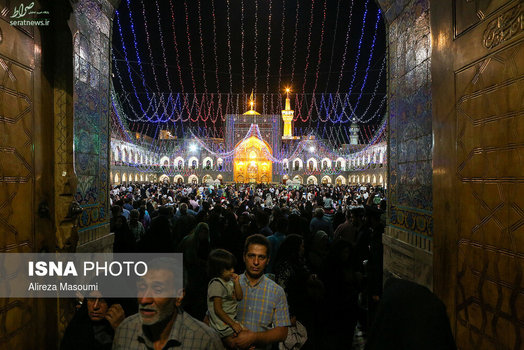 به مناسبت عید غدیر خم و حضور زائران، حرم مطهر رضوی در شب این عید سعید، آذین بندی شده است.
