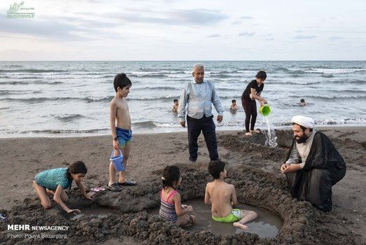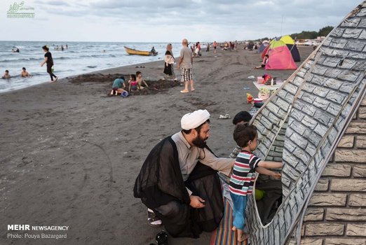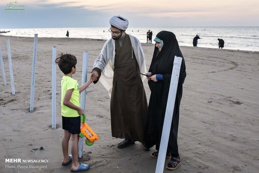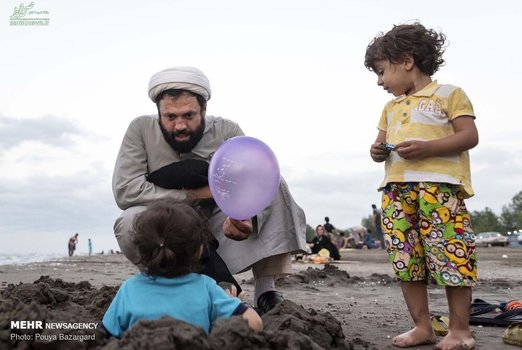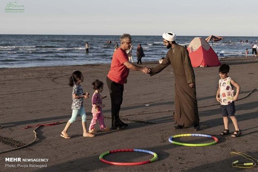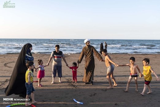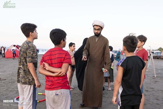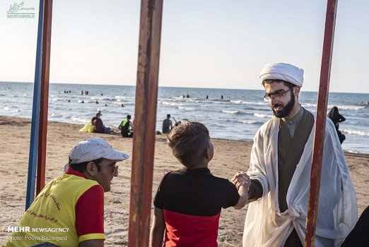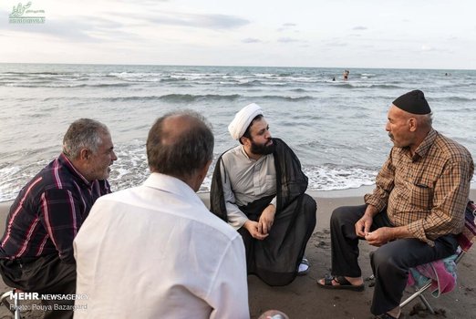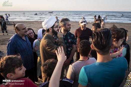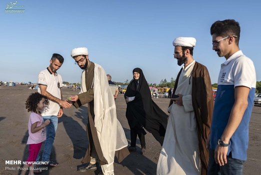 تعدادی از طلاب جوان حوزه علمیه استان گیلان با حضور در تفرجگاههای این استان از جمله سواحل دریا، به گفتوگو و ایجاد فضایی شاد برای خانواده ها به ویژه کودکان میپردازند.