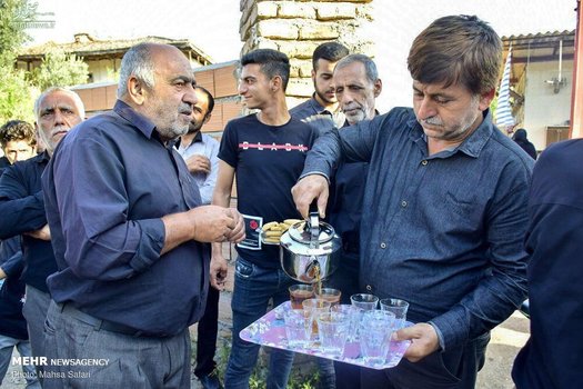 هرکسی در حد توان خود نذری میدهد. عدهای از اهالی شیرینی و شربت میدهند و آنهایی هم که توان مالی بیشتری دارند با غذای گرم از عزاداران پذیرایی میکنند.