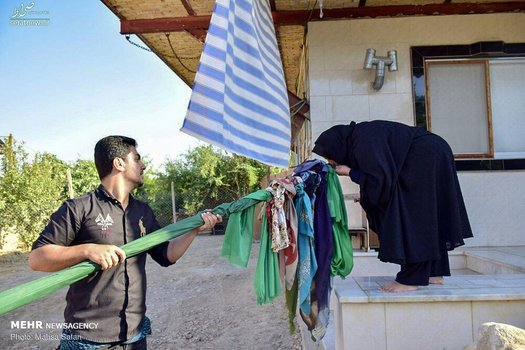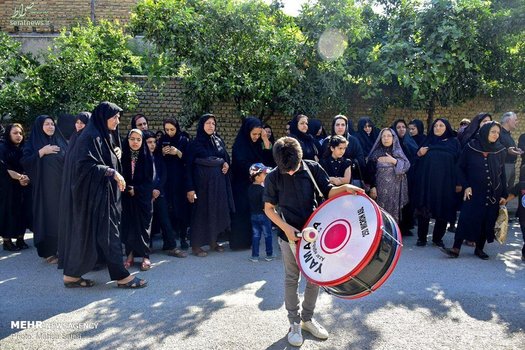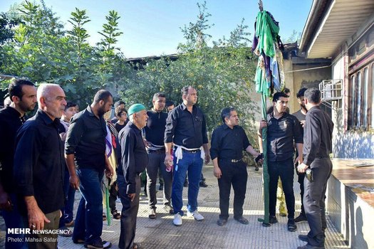 هیات امنا مسجد میگویند هیات به دلیل بزرگی روستا به دسته تقسیم میشوند و بعد از نماز صبح مراسم آغاز میکنند. جوانترها علم را بر دوش میگیرند و به تک تک خانهها سر میزنند، اهالی هم پس از شستن و بوسیدن علم نذر میکنند؛ نذر اکثر بزرگترهای روستا سلامتی و عاقبت به خیری جوانها است. مردم هم پشت سر علم حرکت کرده، نوحه میخوانند و سینه میزنند.