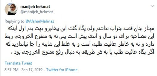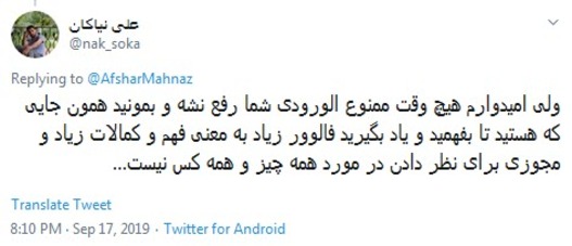 جدیدترین پست مهناز افشار در توییتر و حمله به پگاه آهنگرانی با واکنش اعتراضی و انتقادی کاربران فضای مجازی نیز همراه شد. کاربران ضمن حمایت از صحبتهای پگاه آهنگرانی به واکنش بیاخلاقانه مهناز افشار اعتراض کردند.