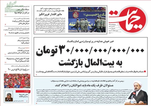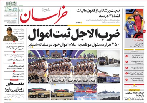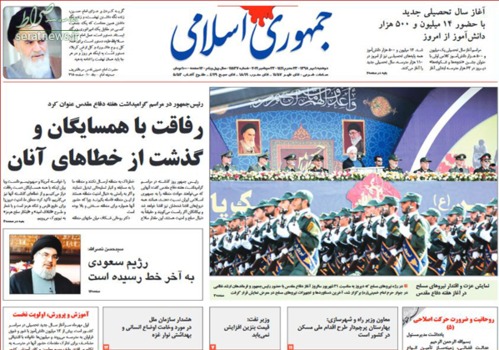 تصاویر صفحه نخست روزنامههای امروز (دوشنبه، اول مهر) در قسمت پایین، قابل مشاهده است: