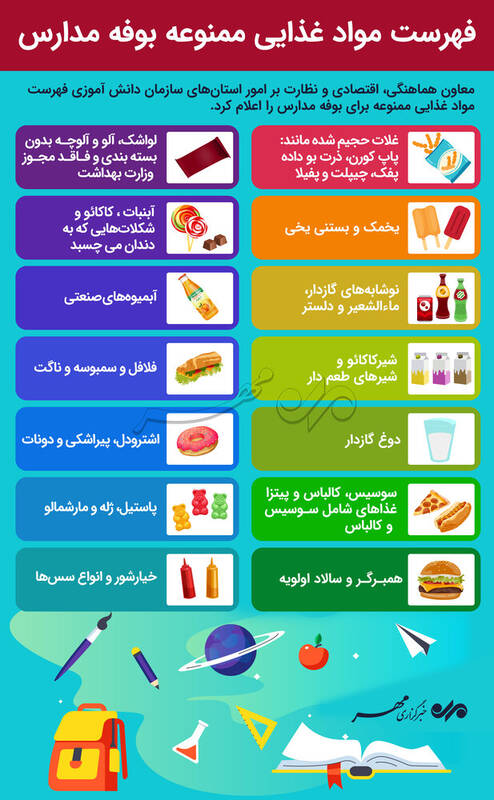 معاون هماهنگی، اقتصادی و نظارت بر امور استانهای سازمان دانشآموری فهرست مواد غذایی ممنوعه برای بوفه مدارس را اعلام کرد.