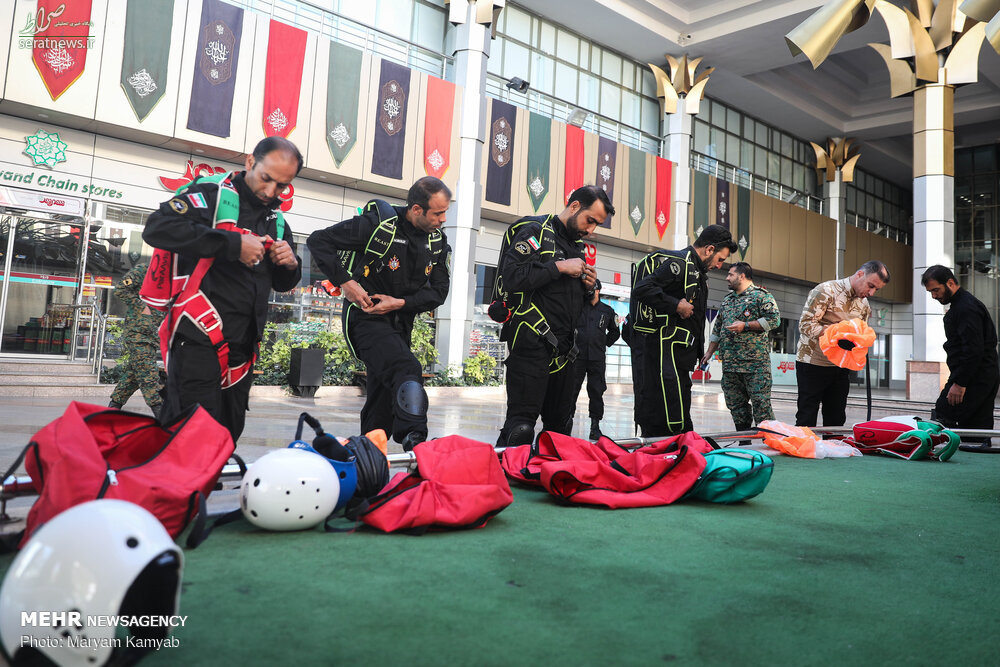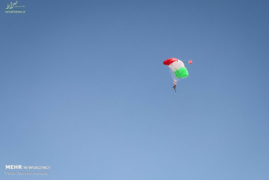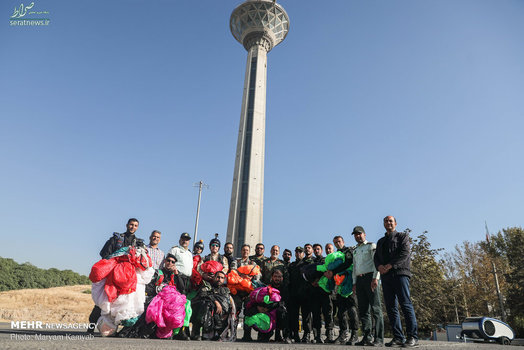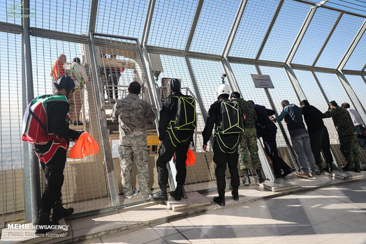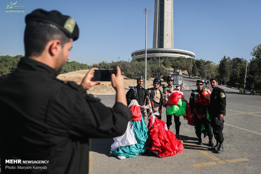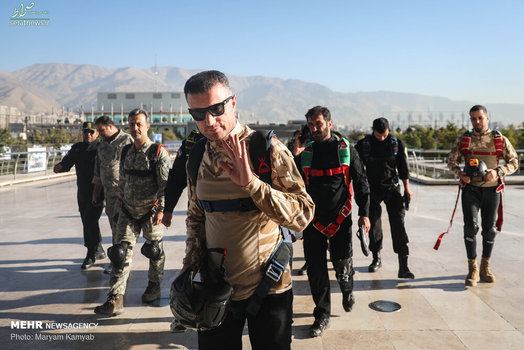 جمعی از چتربازان یگانهای ویژه نیروی انتظامی صبح دوشنبه به مناسبت هفته نیروی انتظامی با پرش از برج میلاد تهران عملیات چتربازی انجام دادند.