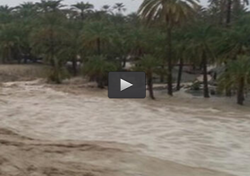 اولین لحظه از طغیان رود فصلی ناهوک در سیستان و بلوچستان بخاطر بارش های سیل آسا و خانمی که لحظاتی قبل از فرا رسیدن سیل از عرض رود، رد می شود.