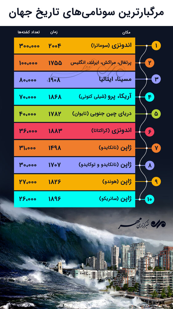 اینفوگرافی/ مرگبارترین سونامیهای تاریخ جهان