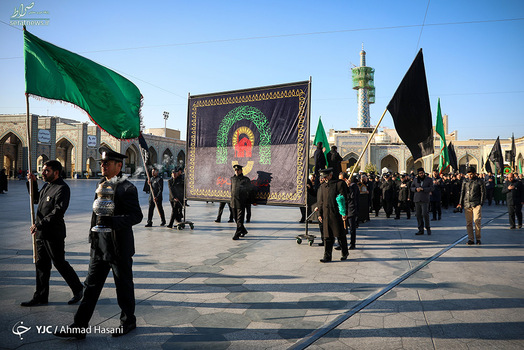 مراسم عزاداری خادمین و خادمیاران حرم مطهر امام رضا (ع) به مناسبت شهادت امام حسن عسکری (ع) صبح چهارشنبه ۱۵ آبان ۱۳۹۸ از باب الکاظم (ع) صحن جامع رضوی به سمت صحن آزادی برگزار شد.