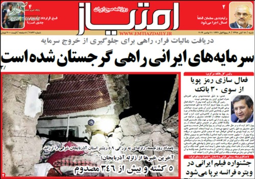 تصاویر صفحه نخست روزنامههای امروز (شنبه، 18 آبان) در قسمت پایین، قابل مشاهده است: