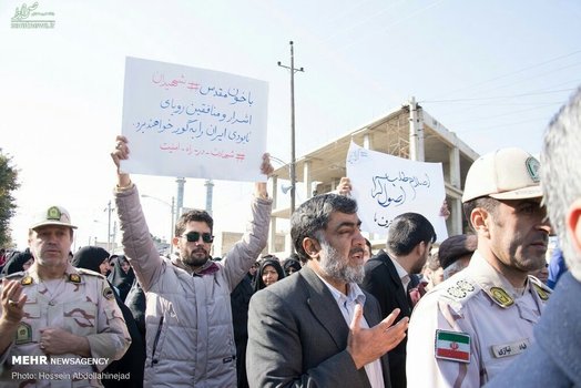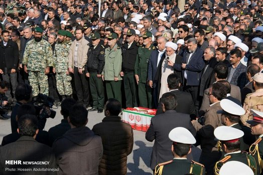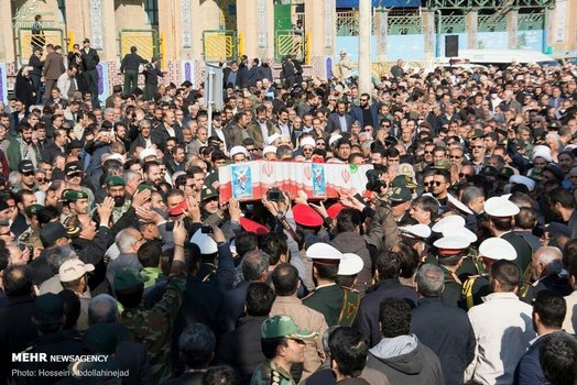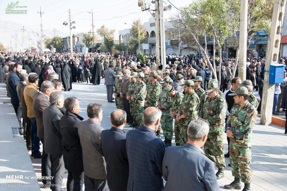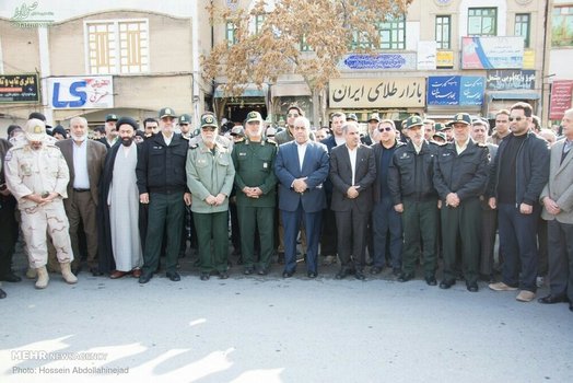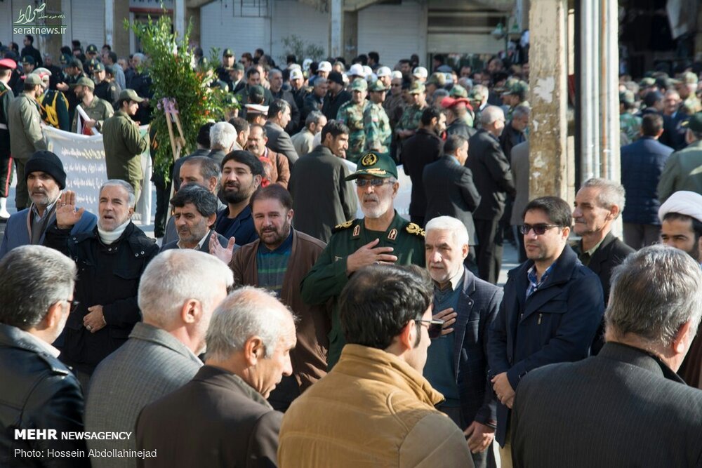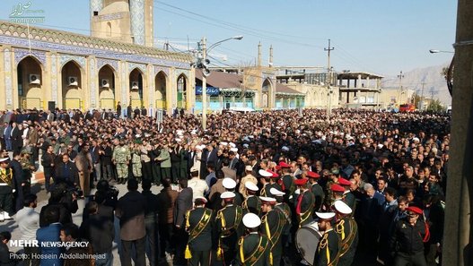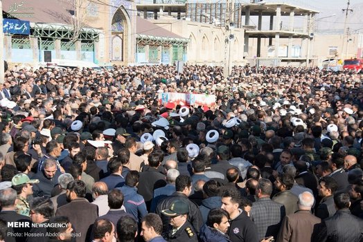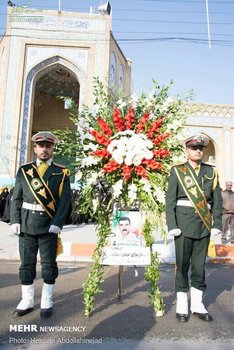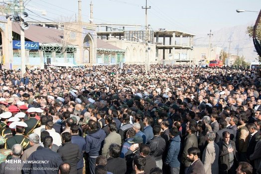 پیکر افسر شهید ناجا «ایرج جواهری» با حضور باشکوه مردم و با شعارهای انقلابی مردم در کرمانشاه تشییع شد.
