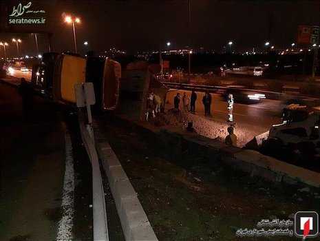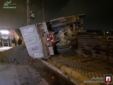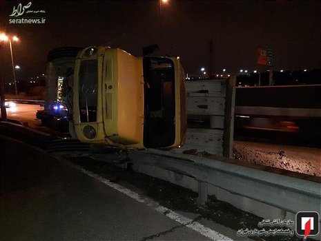 برخورد یک دستگاه کامیون با گاردریل در بزرگراه فتح واژگونی آن را در حاشیه بزرگراه به همراه داشت.