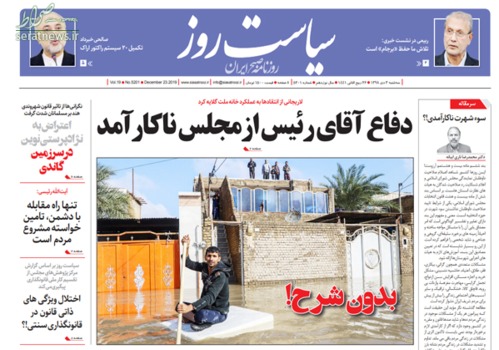 تصاویر صفحه نخست روزنامههای امروز (سه شنبه، ۳ دی) در ادامه صفحه، قابل مشاهده است: