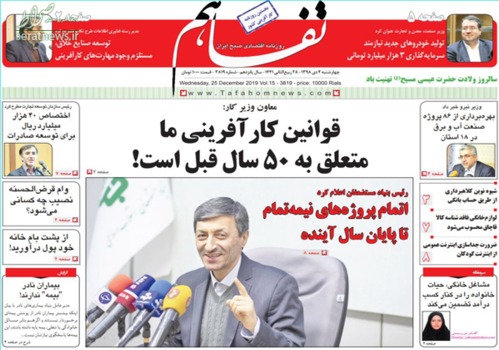 تصاویر صفحه نخست روزنامههای امروز (چهارشنبه، ۴ دی) در قسمت پایین، قابل مشاهده است: