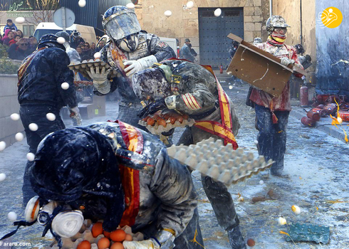 شرکت در این جشنواره که قدمتی 200 ساله دارد مستلزم پوشیدن لباس های نظامی است و به جای اسلحه از تخم مرغ و آرد استفاده می شود. جشنواره سنتی الس انفارینات (Els Enfarinats) در شهر ایبی واقع در استان آلیکانته اسپانیا برگزار شد.