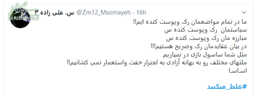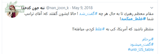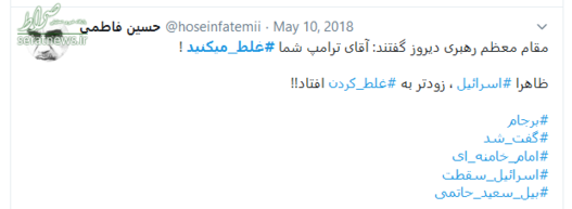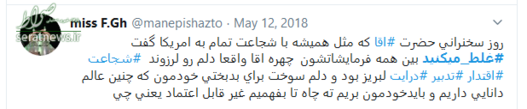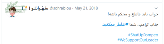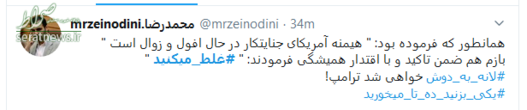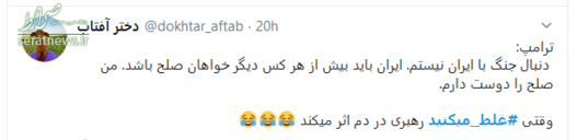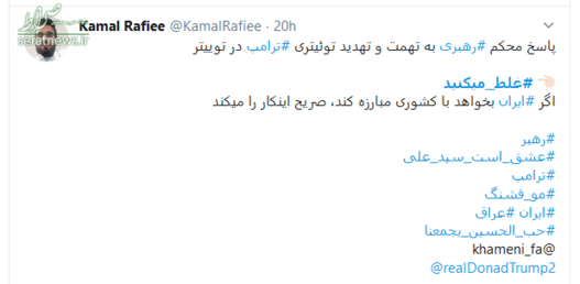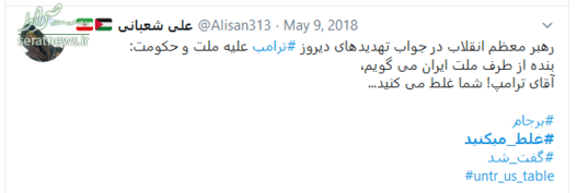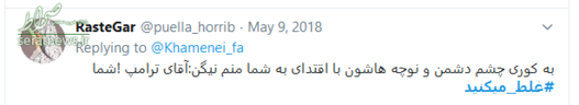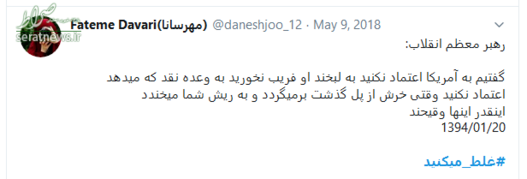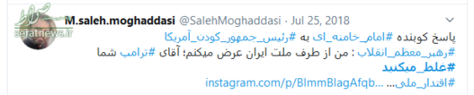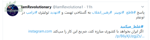 سخنان قاطعانه حضرت آیت‌الله خامنه‌ای که با واکنش‌های گسترده‌ای در سراسر جهان همراه شد، موجی در فضای توئیتری به راه انداخت و کاربران نیز همراه با رهبر انقلاب، به دولت آمریکا پیام دادند که شما #غلط‌_می‌کنید. در ادامه بخشی از پیام‌های توئیتری کاربران را مشاهده می‌کنید.