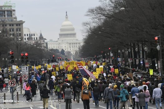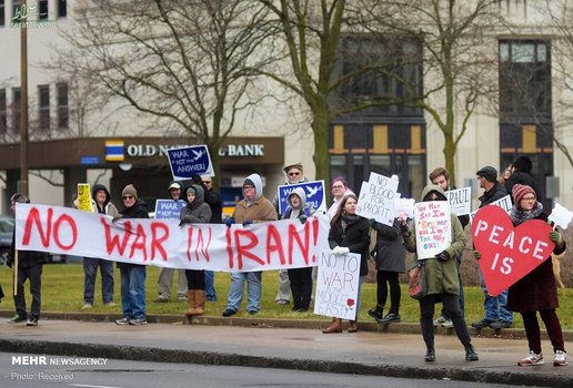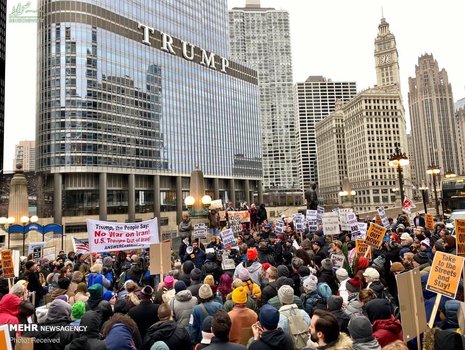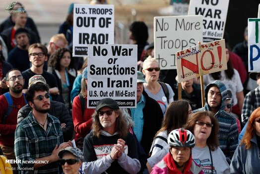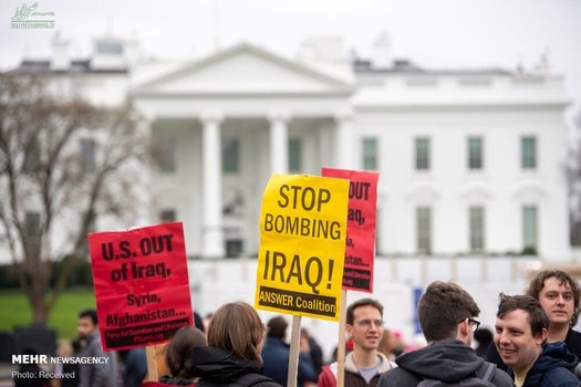 گروههای معترض در واشنگتن و دیگر شهرهای آمریکا به خیابانها آمدند تا حمله هوایی در عراق را که به دستور دونالد ترامپ صورت گرفت و طی آن سردار قاسم سلیمانی فرمانده نظامی ایران شهید شد و نیز تصمیم ترامپ برای اعزام ۳۰۰۰ نظامی دیگر به غرب آسیا را محکوم کنند.