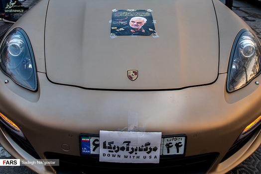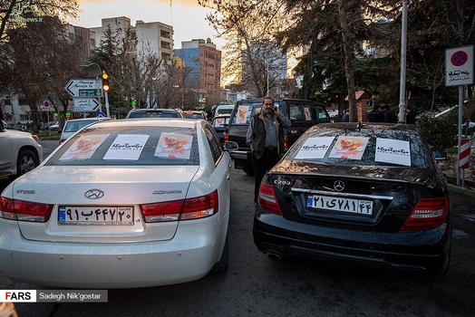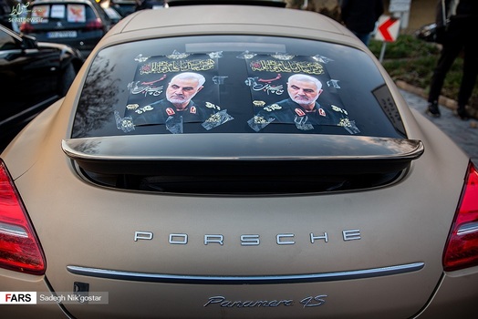 تعدادی از اتومبیل های لاکچری تهران، عصر يکشنبه ۱۵ دی ۱۳۹۸ بمناسبت شهادت حاج قاسم سلیمانی رژه رفتند.