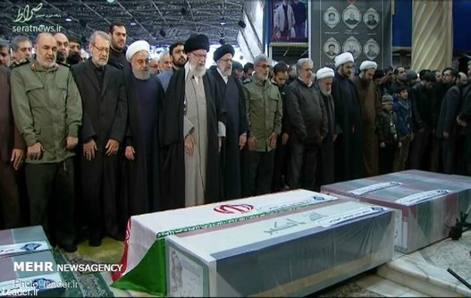در روز رستاخیز تهران و وداع تاریخی مردم مؤمن و قدرشناس آن با سردار بزرگ و پر افتخار اسلام سپهبد شهید حاج قاسم سلیمانی، حضرت آیت الله خامنهای رهبر معظم انقلاب اسلامی در دانشگاه تهران حضور یافتند و بر پیکر مطهر این شهید عالیمقام، مجاهد بزرگ ابومهدی المهندس و دیگر شهدای جنایت اخیر رژیم آمریکا، نماز اقامه کردند.