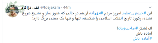 حضور میلیونی مردم شهید پرور و اشکهای رهبر انقلاب در هنگام نماز امروز، موجی از واکنشهای توییتری را به همراه داشت.