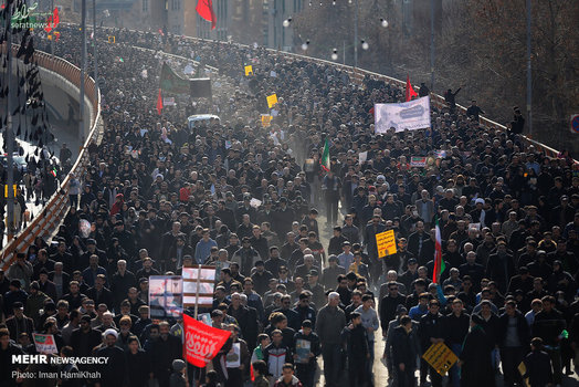 مردم همدان در اجتماعی عظیم در سوگ شهادت سردار سپهبد حاج قاسم سلیمانی به سر و سینه زدند و نفرت خود را از آمریکای جهانخوار نشان دادند.