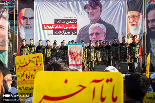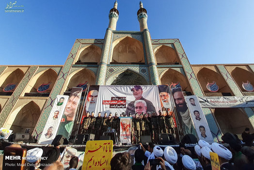 تجمع بزرگ هیات‌های مذهبی یزد در میثاق با شهدای جبهه مقاومت به خصوص سردار رشید اسلام حاج قاسم سلیمانی، عصر دوشنبه در فضایی آکنده از بغض و خشم در حسینیه امیرچقماق این شهرستان برگزار شد.