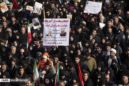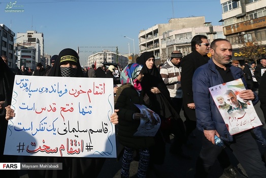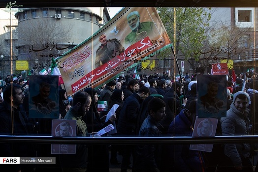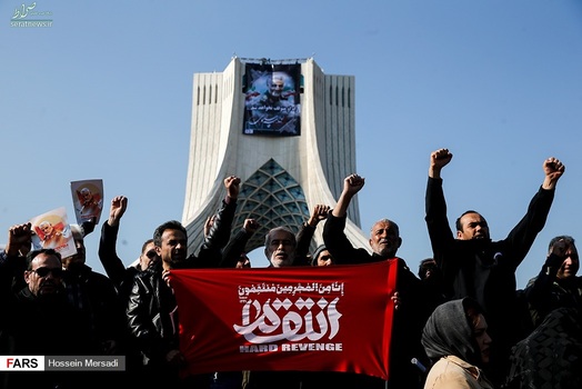 مردم تهران در پی « انتقام سخت » سپاه پاسداران انقلاب اسلامی از بامدادچهارشنبه ۱۸ دی ۱۳۹۸ به خیابان ها آمدند. لازم به ذکر است رزمندگان شجاع نیروی هوافضای سپاه در عملیاتی موفق به نام عملیات شهید سلیمانی با رمز «یا زهرا (س)» با شلیک دهها فروند موشک زمین به زمین، پایگاه هوایی اشغالی ارتش تروریستی و متجاوز آمریکا موسوم به «عین الاسد» را در هم کوبیدند.