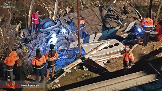 تصاویر/ سقوط مرگبار اتوبوس به دره سوادکوه