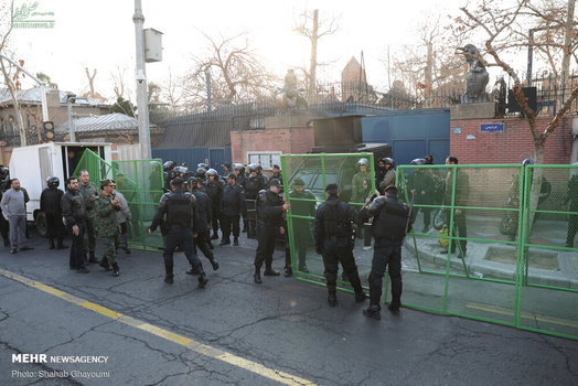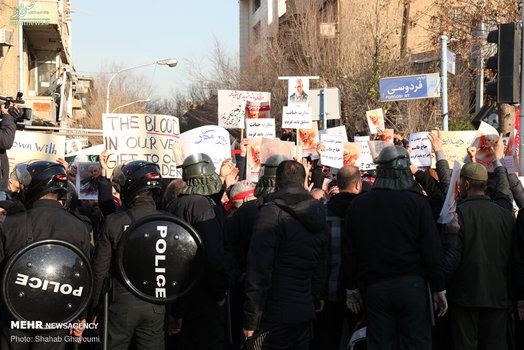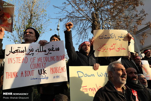 جمعی از دانشجویان دانشگاههای تهران و طلّاب حوزههای علمیه در محکومیت حرکت شب گذشته سفیر انگلیس، عصر یکشنبه ۲۲ دی ماه در مقابل سفارت این کشور در تهران تجمع کرده و خواهان اخراج وی و تعطیلی این سفارت شدند.