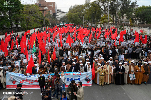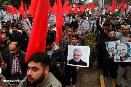 مردم پاکستان در محکومیت اقدام تروریستی آمریکا در به شهادت رساندن سپهبد سلیمانی و همرزمانش در لاهور راهپیمایی کردند.