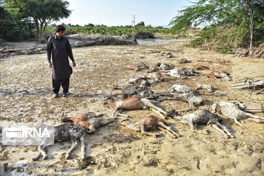 تصاویر اتلاف شمار زیادی احشام بر اثر سیلاب جنوب سیستان و بلوچستان را نشان می دهد.